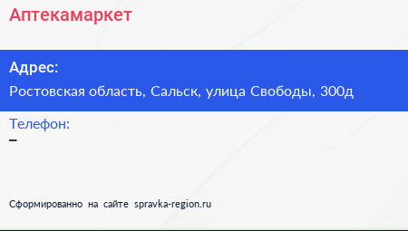 Аптекамаркет по адресу Ростовская область, Сальск, улица Свободы, 300д в дальнейшем Организация, размещена в следующих категориях: