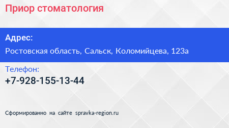 Приор, стоматология по адресу Ростовская область, Сальск, Коломийцева, 123а в дальнейшем Организация, размещена в следующих категориях: