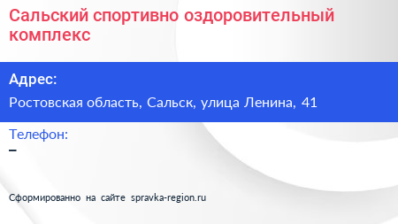 Сальский спортивно- оздоровительный комплекс по адресу Ростовская область, Сальск, улица Ленина, 41 в дальнейшем Организация, размещена в следующих категориях: