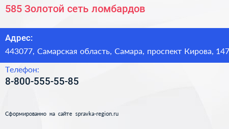 585*Золотой, сеть ломбардов по адресу 443077, Самарская область, Самара, проспект Кирова, 147 в дальнейшем Организация, размещена в следующих категориях: