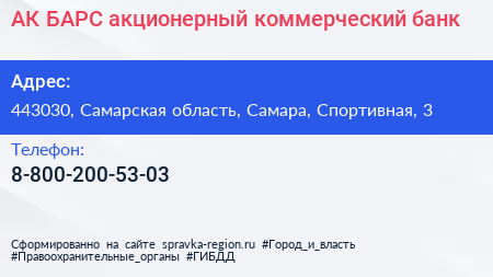 АК БАРС, акционерный коммерческий банк по адресу 443030, Самарская область, Самара, Спортивная, 3 в дальнейшем Организация, размещена в следующих категориях: