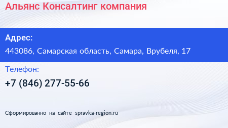 Альянс Консалтинг, компания по адресу 443086, Самарская область, Самара, Врубеля, 17 в дальнейшем Организация, размещена в следующих категориях: