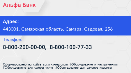 Альфа-Банк по адресу 443001, Самарская область, Самара, Садовая, 256 в дальнейшем Организация, размещена в следующих категориях: