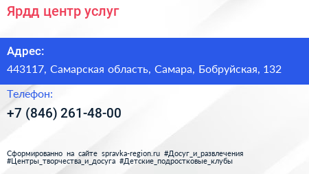 Ярдд, центр услуг по адресу 443117, Самарская область, Самара, Бобруйская, 132 в дальнейшем Организация, размещена в следующих категориях: