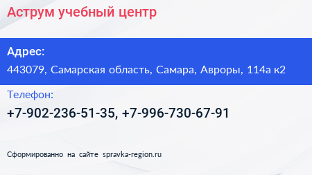 Аструм, учебный центр по адресу 443079, Самарская область, Самара, Авроры, 114а к2 в дальнейшем Организация, размещена в следующих категориях: