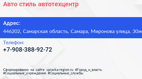 Авто стиль, автотехцентр по адресу 446202, Самарская область, Самара, Миронова улица, 30ж в дальнейшем Организация, размещена в следующих категориях: