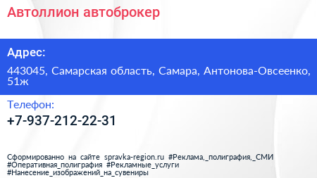 Автоллион, автоброкер по адресу 443045, Самарская область, Самара, Антонова-Овсеенко, 51ж в дальнейшем Организация, размещена в следующих категориях: