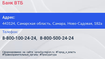 Банк ВТБ по адресу 443124, Самарская область, Самара, Ново-Садовая, 182а в дальнейшем Организация, размещена в следующих категориях: