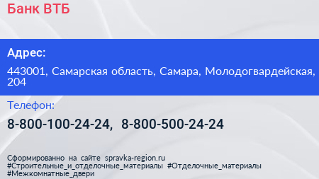 Банк ВТБ по адресу 443001, Самарская область, Самара, Молодогвардейская, 204 в дальнейшем Организация, размещена в следующих категориях: