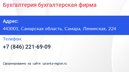 Бухгалтерия, бухгалтерская фирма по адресу 443001, Самарская область, Самара, Ленинская, 224 в дальнейшем Организация, размещена в следующих категориях: