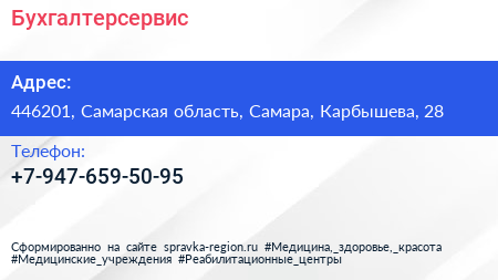 Бухгалтерсервис по адресу 446201, Самарская область, Самара, Карбышева, 28 в дальнейшем Организация, размещена в следующих категориях: