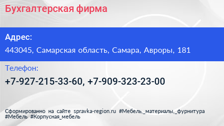 Бухгалтерская фирма по адресу 443045, Самарская область, Самара, Авроры, 181 в дальнейшем Организация, размещена в следующих категориях: