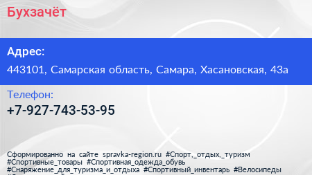 Бухзачёт по адресу 443101, Самарская область, Самара, Хасановская, 43а в дальнейшем Организация, размещена в следующих категориях: