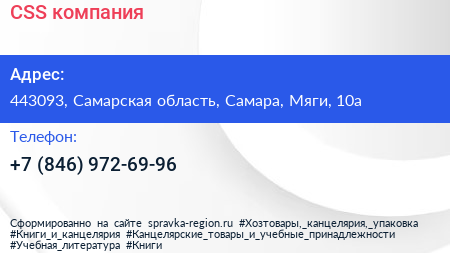 CSS, компания по адресу 443093, Самарская область, Самара, Мяги, 10а в дальнейшем Организация, размещена в следующих категориях: