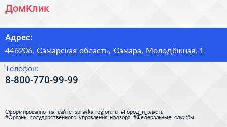ДомКлик по адресу 446206, Самарская область, Самара, Молодёжная, 1 в дальнейшем Организация, размещена в следующих категориях: