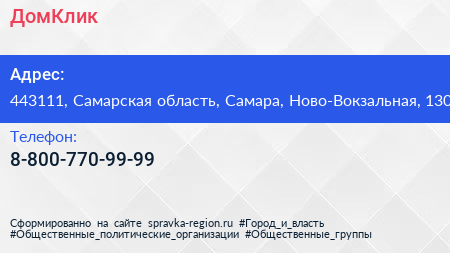 ДомКлик по адресу 443111, Самарская область, Самара, Ново-Вокзальная, 130 в дальнейшем Организация, размещена в следующих категориях: