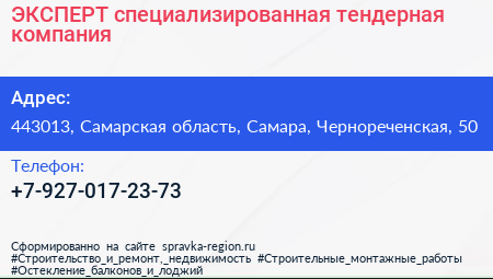 ЭКСПЕРТ, специализированная тендерная компания по адресу 443013, Самарская область, Самара, Чернореченская, 50 в дальнейшем Организация, размещена в следующих категориях: