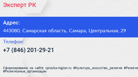 Эксперт-РК по адресу 443080, Самарская область, Самара, Центральная, 29 в дальнейшем Организация, размещена в следующих категориях: