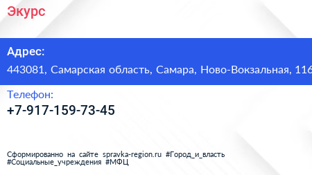 Экурс по адресу 443081, Самарская область, Самара, Ново-Вокзальная, 116 в дальнейшем Организация, размещена в следующих категориях: