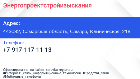 Энергопроектстройизыскания по адресу 443082, Самарская область, Самара, Клиническая, 218 в дальнейшем Организация, размещена в следующих категориях: