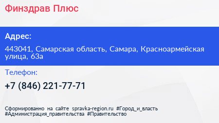 Финздрав Плюс по адресу 443041, Самарская область, Самара, Красноармейская улица, 63а в дальнейшем Организация, размещена в следующих категориях:
