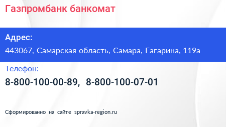 Газпромбанк, банкомат по адресу 443067, Самарская область, Самара, Гагарина, 119а в дальнейшем Организация, размещена в следующих категориях:
