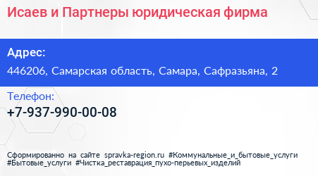 Исаев и Партнеры, юридическая фирма по адресу 446206, Самарская область, Самара, Сафразьяна, 2 в дальнейшем Организация, размещена в следующих категориях: