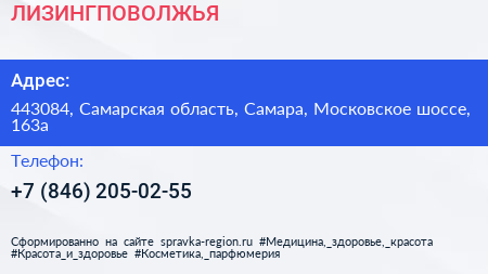 ЛИЗИНГПОВОЛЖЬЯ по адресу 443084, Самарская область, Самара, Московское шоссе, 163а в дальнейшем Организация, размещена в следующих категориях: