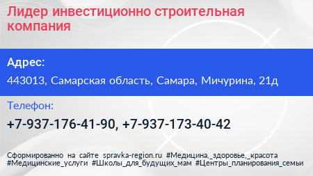 Лидер, инвестиционно-строительная компания по адресу 443013, Самарская область, Самара, Мичурина, 21д в дальнейшем Организация, размещена в следующих категориях: