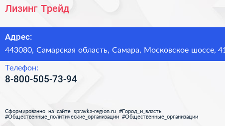 Лизинг-Трейд по адресу 443080, Самарская область, Самара, Московское шоссе, 41 в дальнейшем Организация, размещена в следующих категориях: