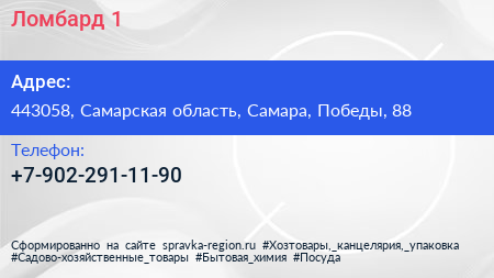 Ломбард №1 по адресу 443058, Самарская область, Самара, Победы, 88 в дальнейшем Организация, размещена в следующих категориях: