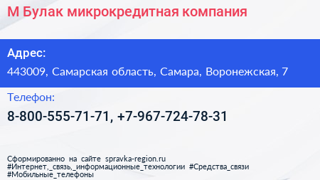 М Булак, микрокредитная компания по адресу 443009, Самарская область, Самара, Воронежская, 7 в дальнейшем Организация, размещена в следующих категориях: