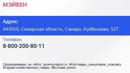 МЭЙВЕН по адресу 443010, Самарская область, Самара, Куйбышева, 127 в дальнейшем Организация, размещена в следующих категориях: