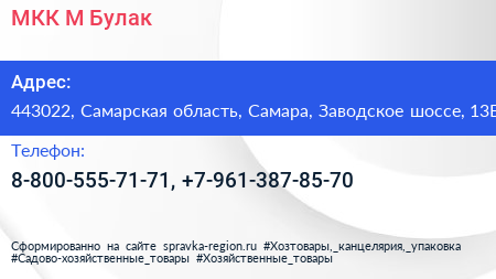 МКК М Булак по адресу 443022, Самарская область, Самара, Заводское шоссе, 13Б в дальнейшем Организация, размещена в следующих категориях: