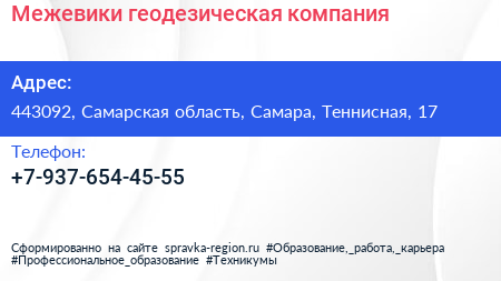 Межевики, геодезическая компания по адресу 443092, Самарская область, Самара, Теннисная, 17 в дальнейшем Организация, размещена в следующих категориях: