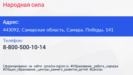 Народная сила по адресу 443092, Самарская область, Самара, Победы, 141 в дальнейшем Организация, размещена в следующих категориях: