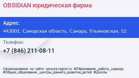 OBSIDIAN, юридическая фирма по адресу 443001, Самарская область, Самара, Ульяновская, 52 в дальнейшем Организация, размещена в следующих категориях: