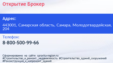 Открытие Брокер по адресу 443001, Самарская область, Самара, Молодогвардейская, 204 в дальнейшем Организация, размещена в следующих категориях: