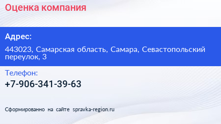 Оценка, компания по адресу 443023, Самарская область, Самара, Севастопольский переулок, 3 в дальнейшем Организация, размещена в следующих категориях: