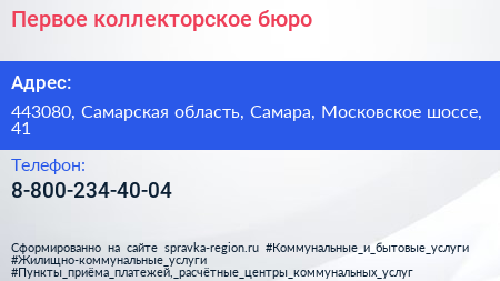 Первое коллекторское бюро по адресу 443080, Самарская область, Самара, Московское шоссе, 41 в дальнейшем Организация, размещена в следующих категориях: