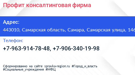 Профит, консалтинговая фирма по адресу 443010, Самарская область, Самара, Самарская улица, 146 в дальнейшем Организация, размещена в следующих категориях: