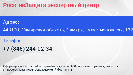 РосогнеЗащита, экспертный центр по адресу 443100, Самарская область, Самара, Галактионовская, 132 в дальнейшем Организация, размещена в следующих категориях: