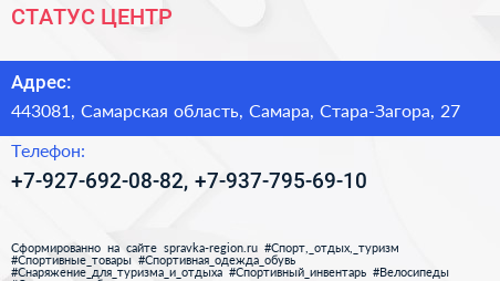 СТАТУС ЦЕНТР по адресу 443081, Самарская область, Самара, Стара-Загора, 27 в дальнейшем Организация, размещена в следующих категориях:
