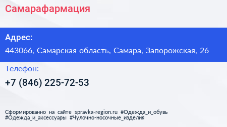 Самарафармация по адресу 443066, Самарская область, Самара, Запорожская, 26 в дальнейшем Организация, размещена в следующих категориях: