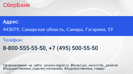 СберБанк по адресу 443079, Самарская область, Самара, Гагарина, 19 в дальнейшем Организация, размещена в следующих категориях: