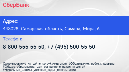 СберБанк по адресу 443028, Самарская область, Самара, Мира, 6 в дальнейшем Организация, размещена в следующих категориях:
