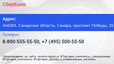 СберБанк по адресу 446201, Самарская область, Самара, проспект Победы, 35 в дальнейшем Организация, размещена в следующих категориях: