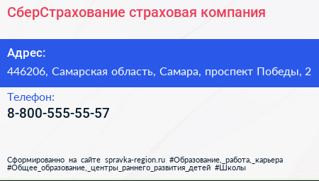 СберСтрахование, страховая компания по адресу 446206, Самарская область, Самара, проспект Победы, 2 в дальнейшем Организация, размещена в следующих категориях: