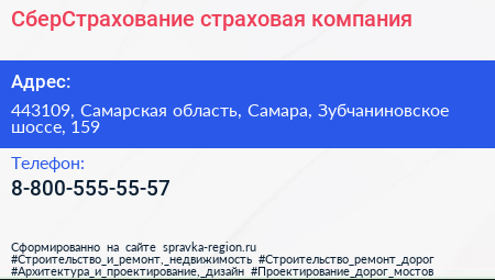 СберСтрахование, страховая компания по адресу 443109, Самарская область, Самара, Зубчаниновское шоссе, 159 в дальнейшем Организация, размещена в следующих категориях: