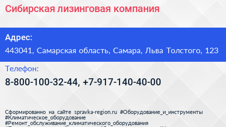 Сибирская лизинговая компания по адресу 443041, Самарская область, Самара, Льва Толстого, 123 в дальнейшем Организация, размещена в следующих категориях: